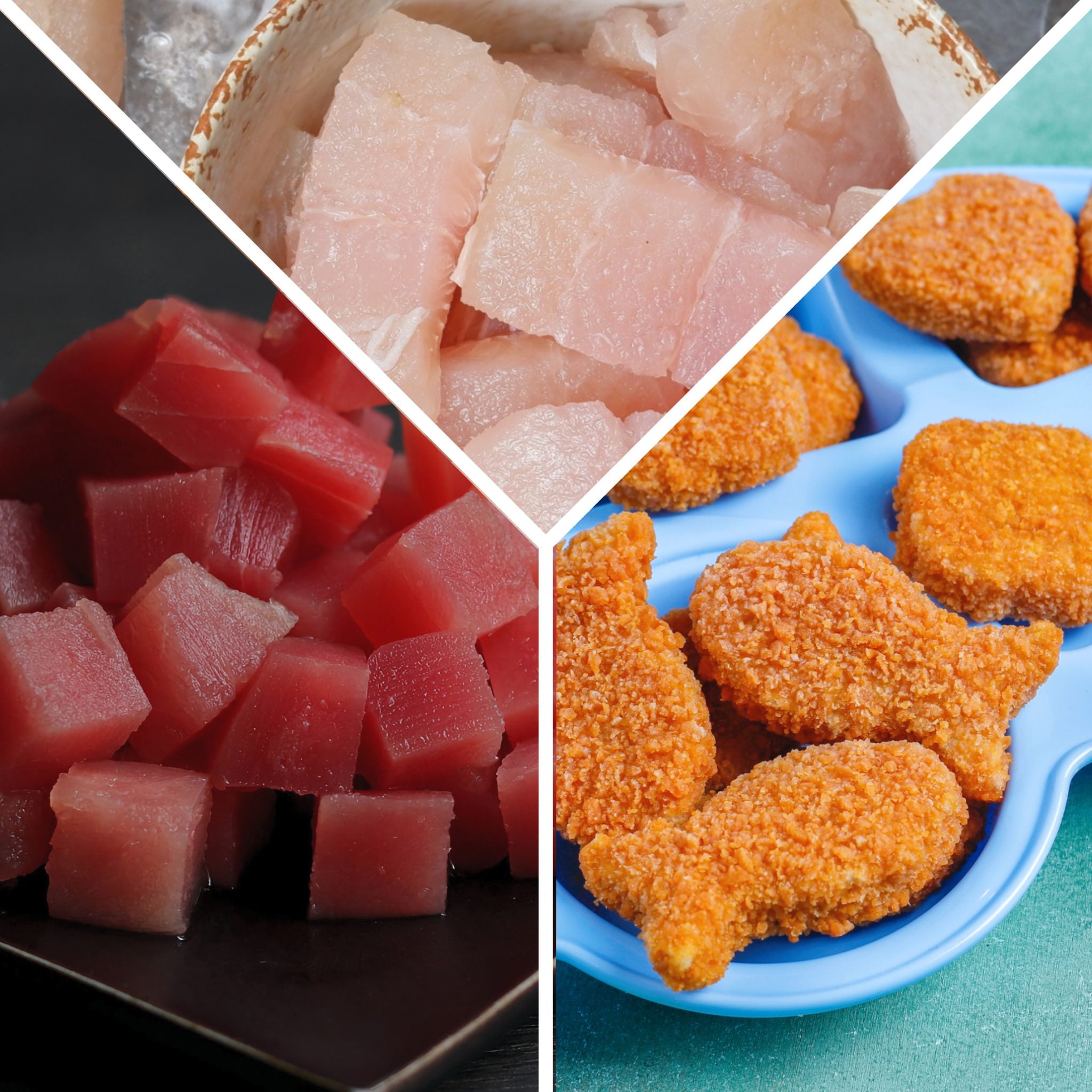 1.9kg: 2 paquetes de cubos de robalo + 2 paquetes de cubos de atún + 2 paquetes de nuggets de pescado