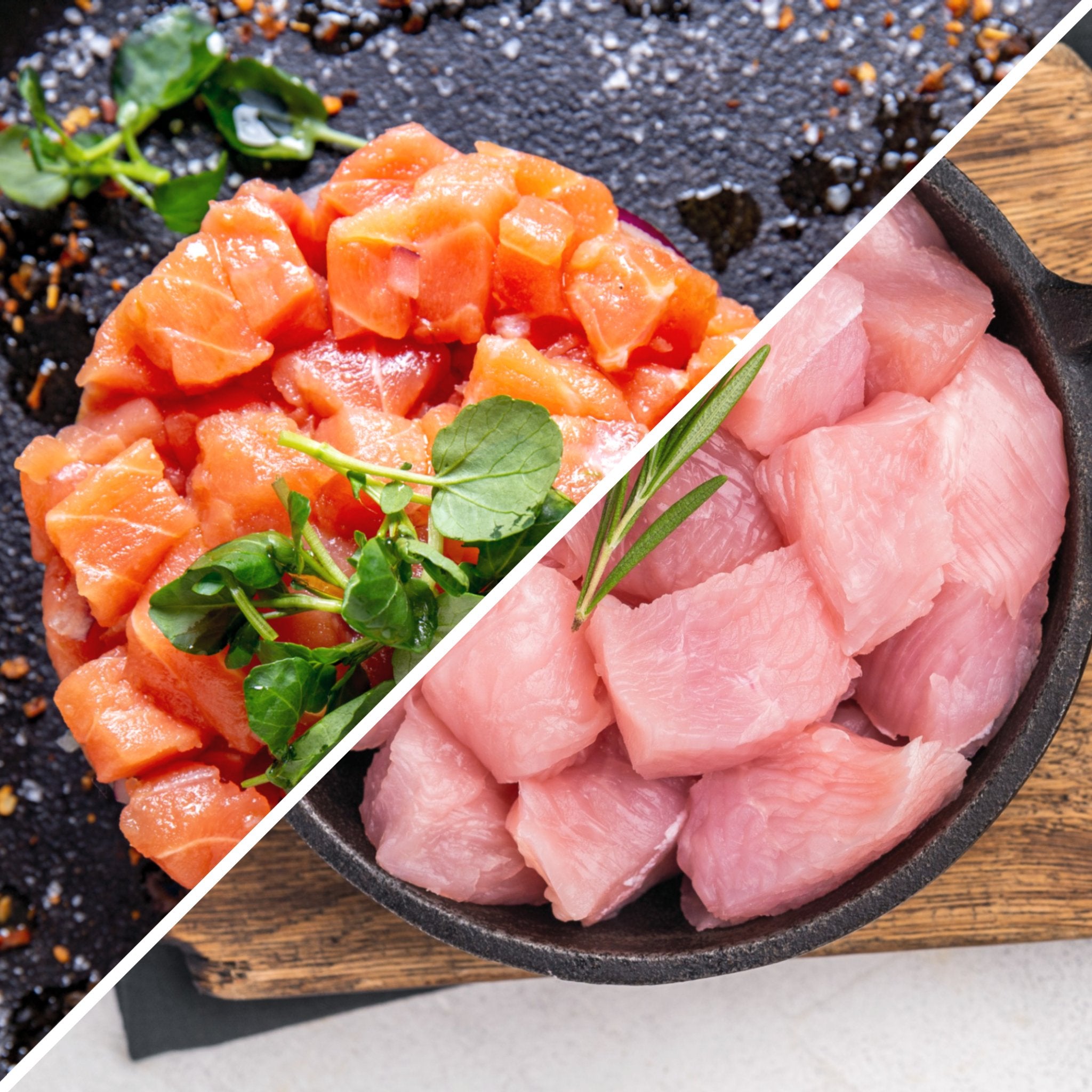 | 3kg | 7 paquetes de cubos de salmón + 6 paquetes de cubos de huachinango |