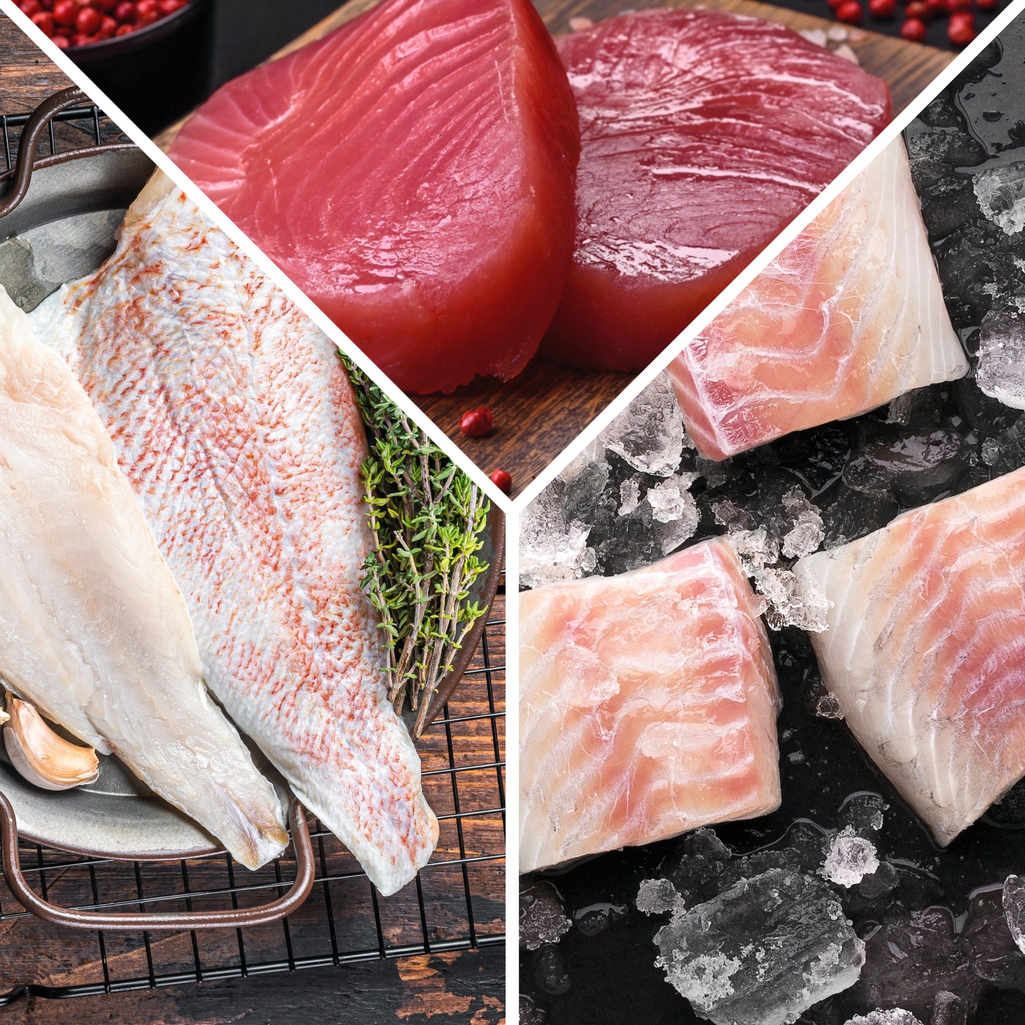 3kg: 5 piezas de huachinango + 5 piezas de atún + 5 piezas de mahi mahi