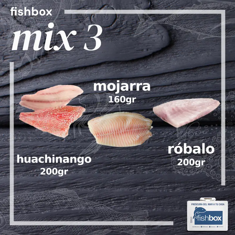 3kg: 5 piezas de Huachinango + 5 piezas de mojarra + 5 piezas de róbalo