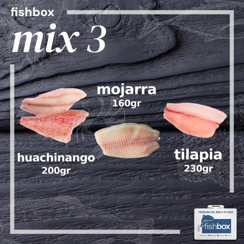 3kg: 5 piezas de Huachinango + 5 piezas de mojarra + 4 piezas de tilapia