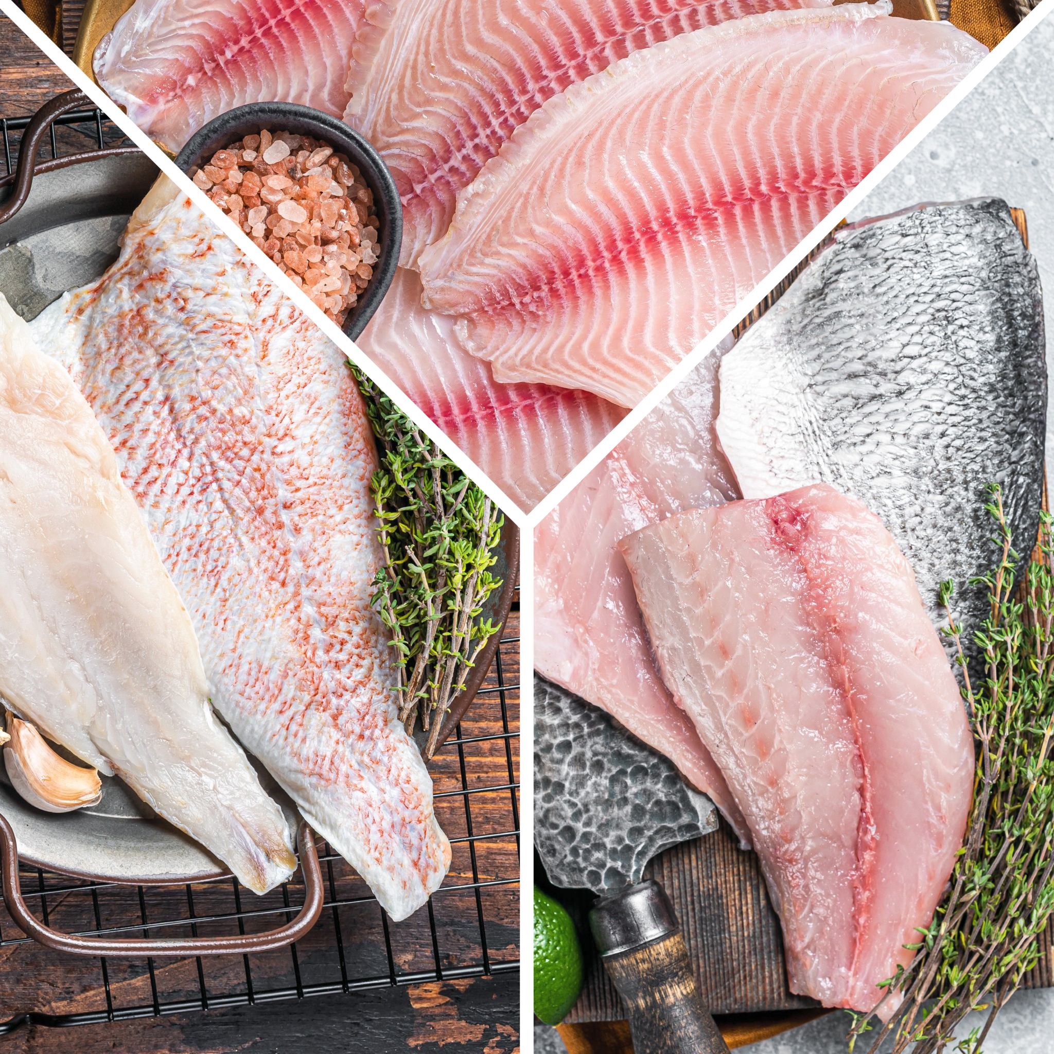 3kg 5 piezas de Huachinango + 4 piezas de tilapia + 5 piezas de róbalo.
