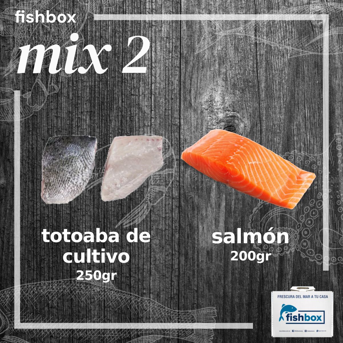 | 2kg | 9 a 10 piezas aprox. | 5 totoaba - 5 salmón |